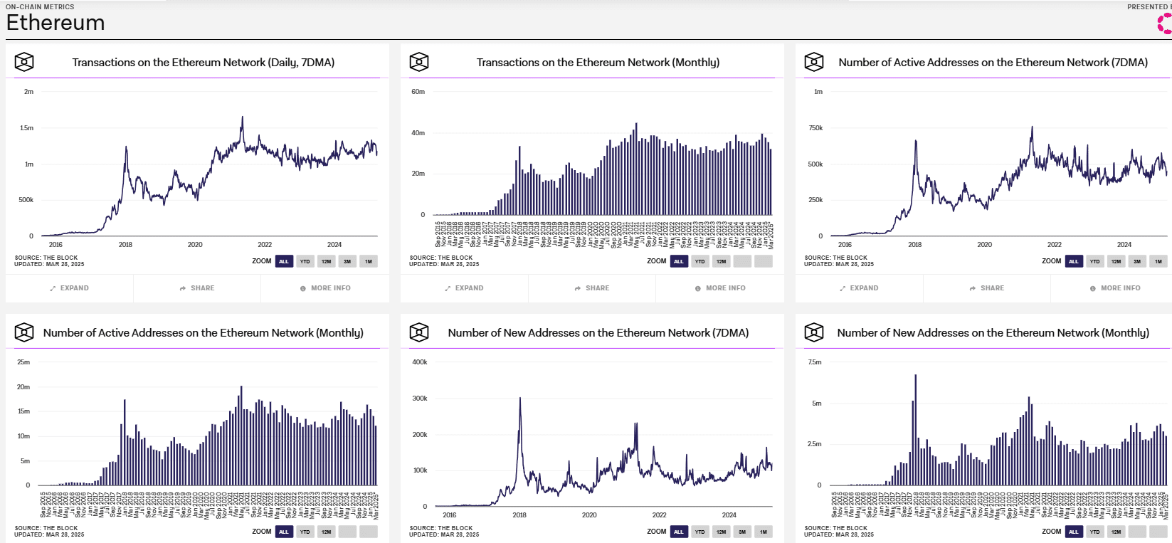 “No se equivoquen, $ ETH como inversión está completamente muerta. Una red de capitalización de mercado de $ 225 mil millones que está viendo disminuciones en la actividad de transacciones, el crecimiento de los usuarios y las tarifas/ingresos. No hay un caso de inversión aquí”.