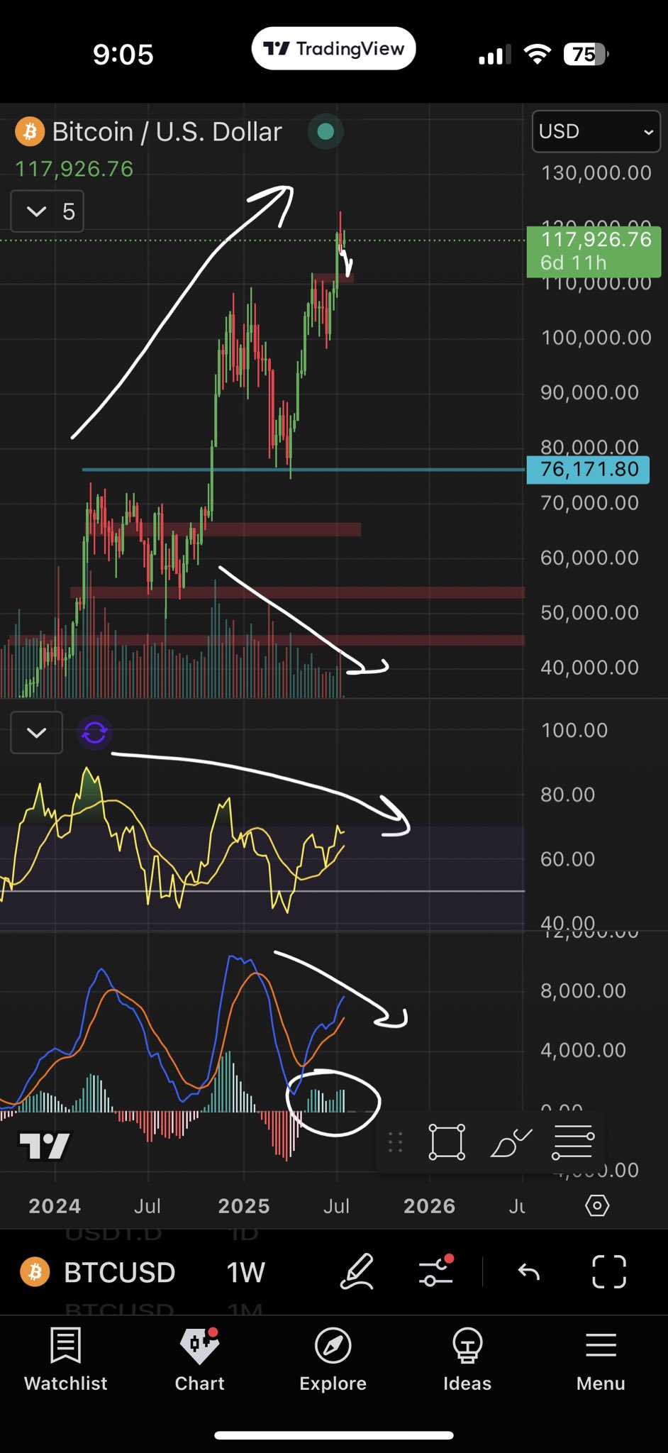 Roman advirtió sobre el gráfico semanal después de analizarlo. “Agotamiento” que se arrastra a través de los indicadores de precios, en particular el índice de resistencia relativa (RSI) y la convergencia/divergencia del promedio móvil (MACD).