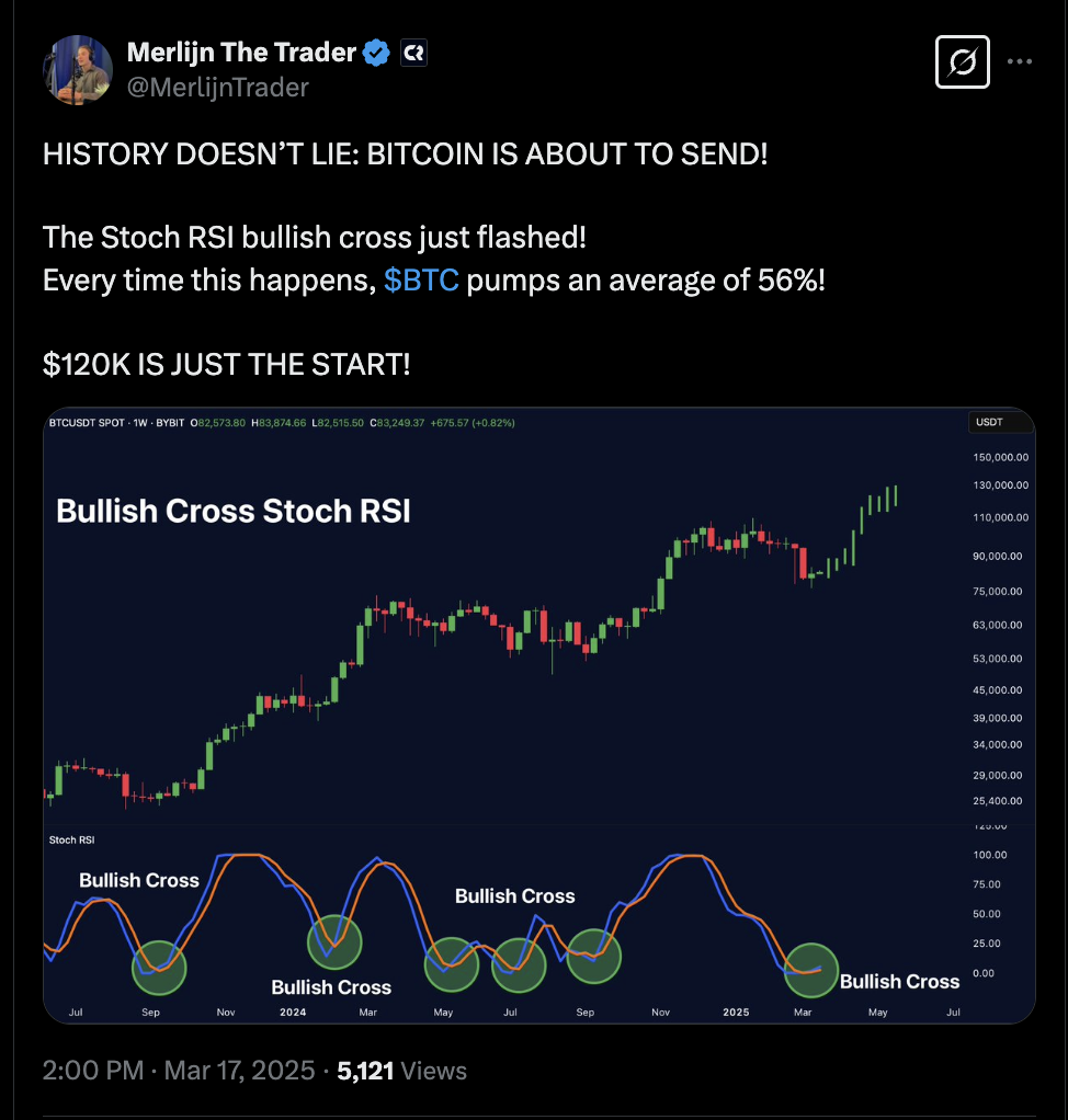 Merjin, el comerciante es analista de las tendencias del mercado. dice El precio de Bitcoin podría alcanzar los $ 120,000 si el RSI fractal estocástico funciona según lo planeado.