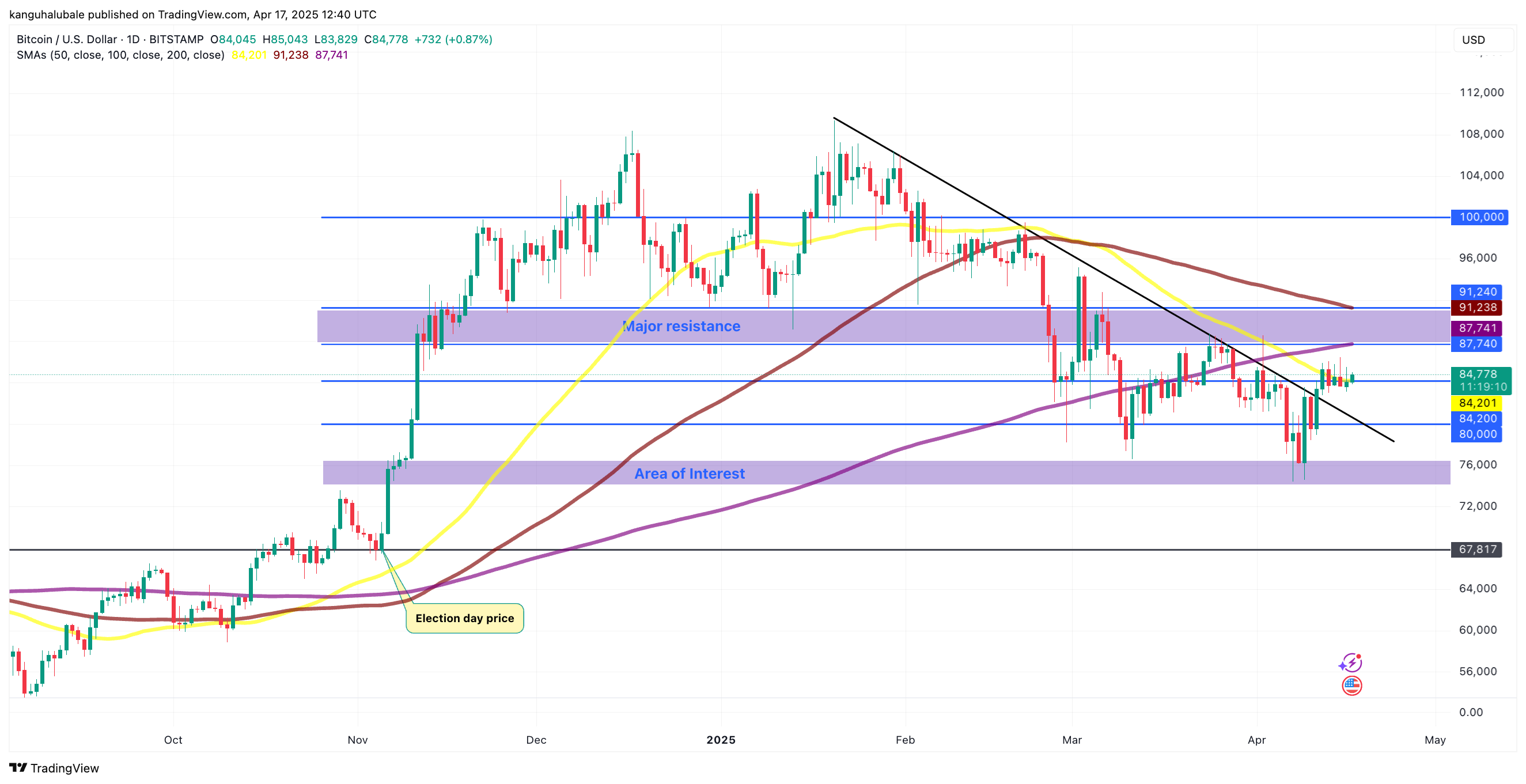 Bajo ese precio, el siguiente paso sería volver a probar el precio del día de la elección de los Estados Unidos de $ 68,817. Esto borrará todas las ganancias de la bomba Trump.