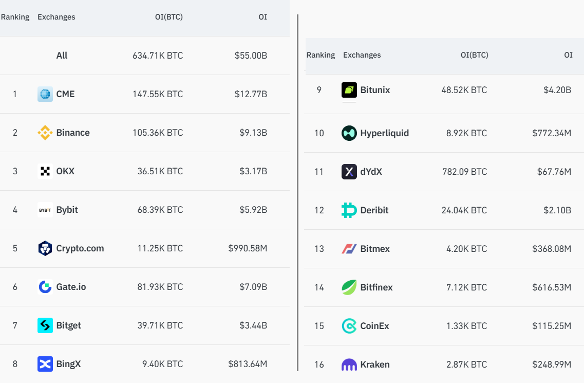 Bitcoin Futures Open Interest Ranking, USD. Fuente: Canderlass